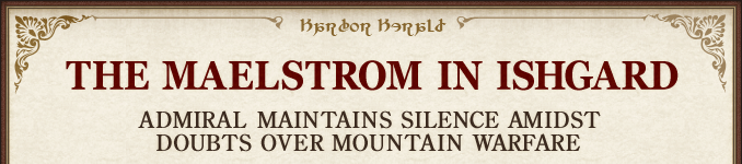 As it stands, one mystery remains: to what end does the Maelstrom possess knowledge of Ishgard’s military secrets? Our analysts speculate that Chief Admiral Merlwyb seeks to gauge the Empire’s military capacity on the pretext of an investigation. Further, should the opportunity to claim occupation of Ishgard present itself, she is not like to decline it.
