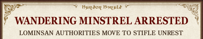 A botanist present at the scene of the arrest furnished us with an eyewitness account. The wandering minstrel was, as always, penning letters and speaking in impassioned tones to visiting adventurers. Without warning, however, a squad of glowering Yellow Jackets shouldered through the crowd and apprehended the surprised bard on charges of “inciting unrest.”