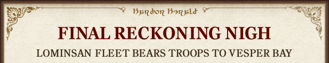 Even as I put quill to parchment, this combined Lominsan fleet is en route to Vesper Bay, the maritime gateway to Thanalan, bearing a burden of soldiers. Upon making landfall, the Lominsans will merge with the forces of the Immortal Flames and the Order of the Twin Adder. Maelstrom officials have been tight-lipped about their plans thereafter, but all evidence suggests that the allied army will then march for the Carteneau Flats in Mor Dhona, where the VIIth Imperial Legion is presently entrenched. It would seem the final confrontation between the Eorzean Alliance and the Garlean Empire is just beyond the horizon.