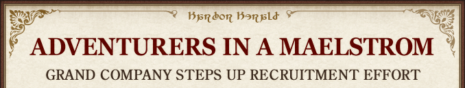As the main Lominsan host traverses the Strait of Merlthor on its way to the fields of reckoning, a second is in the midst of being assembled. At the heart of this auxiliary force is the Foreign Levy, the Maelstrom unit formed of adventurers and specializing in land warfare. Thus far in the conflict, adventurers have been instrumental in dealing with Garlean presence across the realm. With their strength joined to the main host, the Maelstrom will reach the zenith of its might—the least we will need if we are to smite the imperial invaders once and for all.